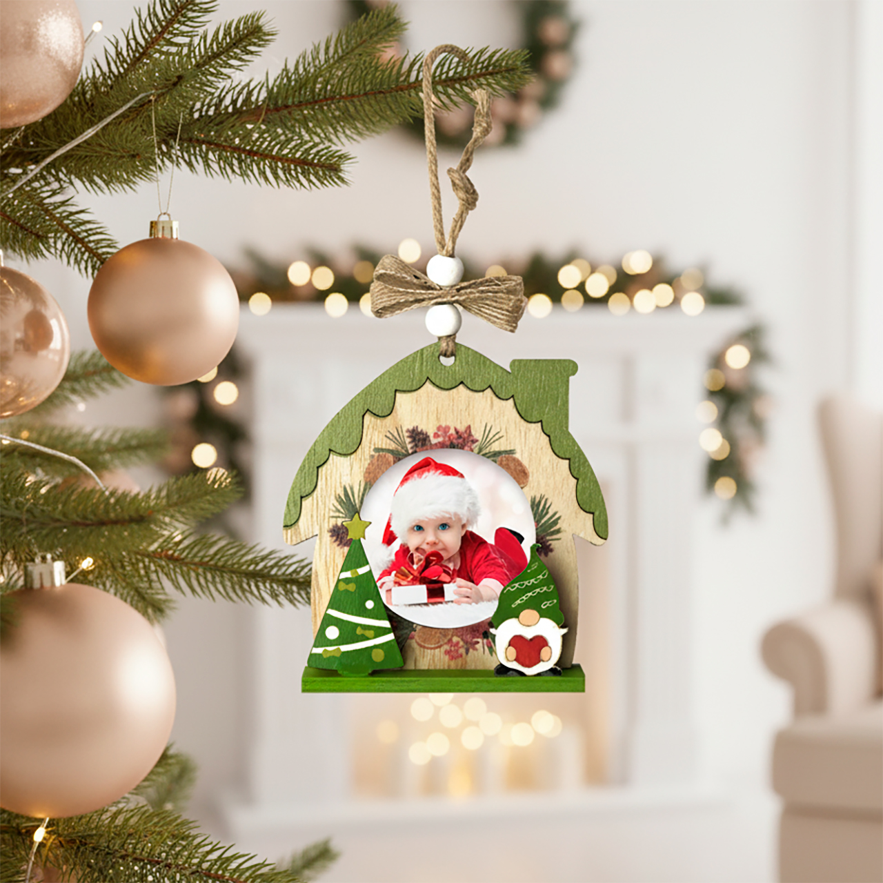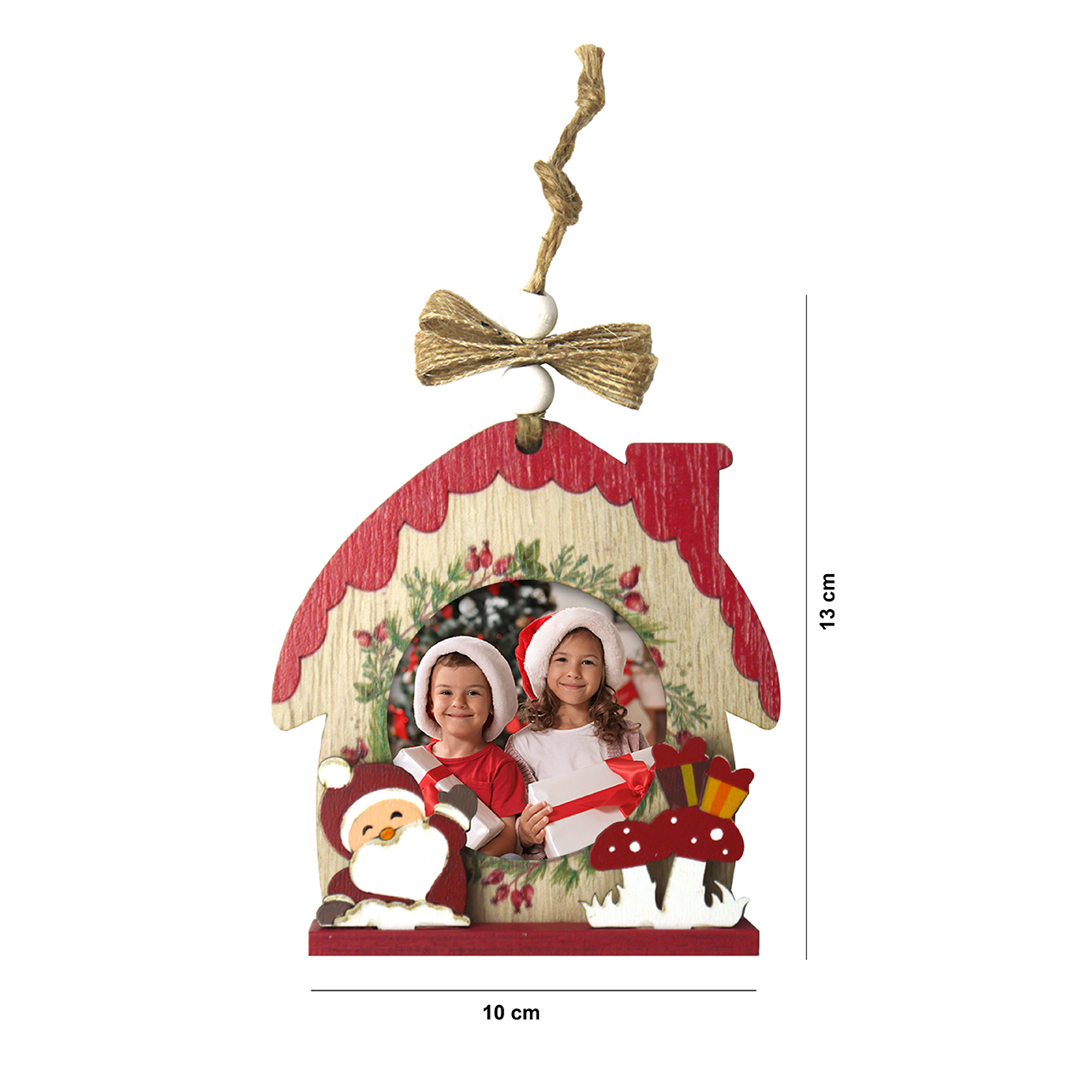 The Personalized Christmas Wooden House Ornament is a charming detail that transforms your home into a place full of memories. You can hang it on the tree, your doors or furniture. This Christmas ornament is available in red or green, and represents the warmth of the family during Christmas.