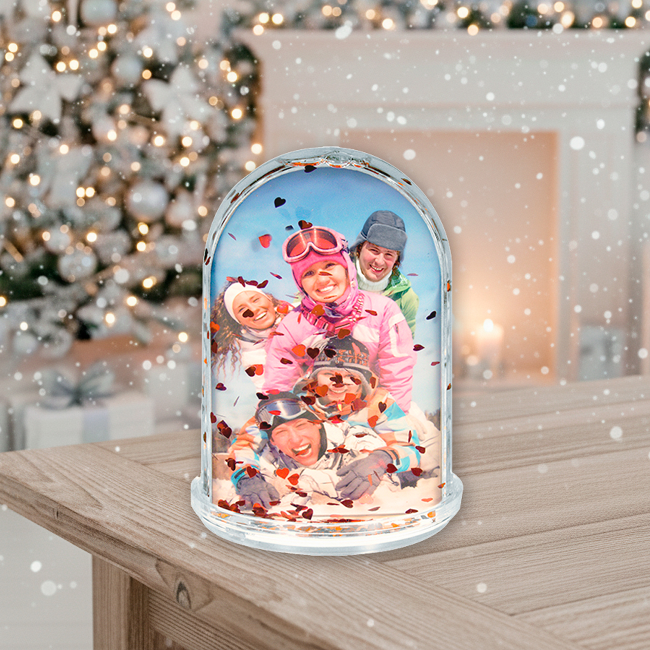 ¡Son mágicas y divertidas! Ilusiona regalando una original Bola de Nieve personalizada. Esta bola de nieve fotográfica está hecha de plástico transparente de alta calidad, contiene un líquido transparente en el que giran los destellos rojos del corazón.