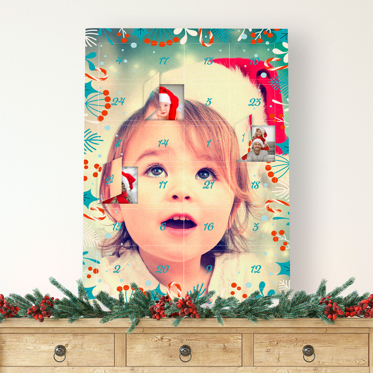 Calendario de Adviento Personalizado con tus Fotos ¡Sorprende a tus seres queridos esta Navidad! Crea un regalo único y especial con este calendario de adviento DIY. Elige hasta 24 de tus mejores fotos para crear ventanas que se abrirán día a día hasta Navidad. Un detalle creativo y sentimental para compartir los recuerdos más especiales. Incluye fotos de amigos, familia, mascotas o momentos importantes. Decorado con imágenes y mensajes personalizados. El regalo perfecto hecho a mano y con amor para esta temporada navideña.
