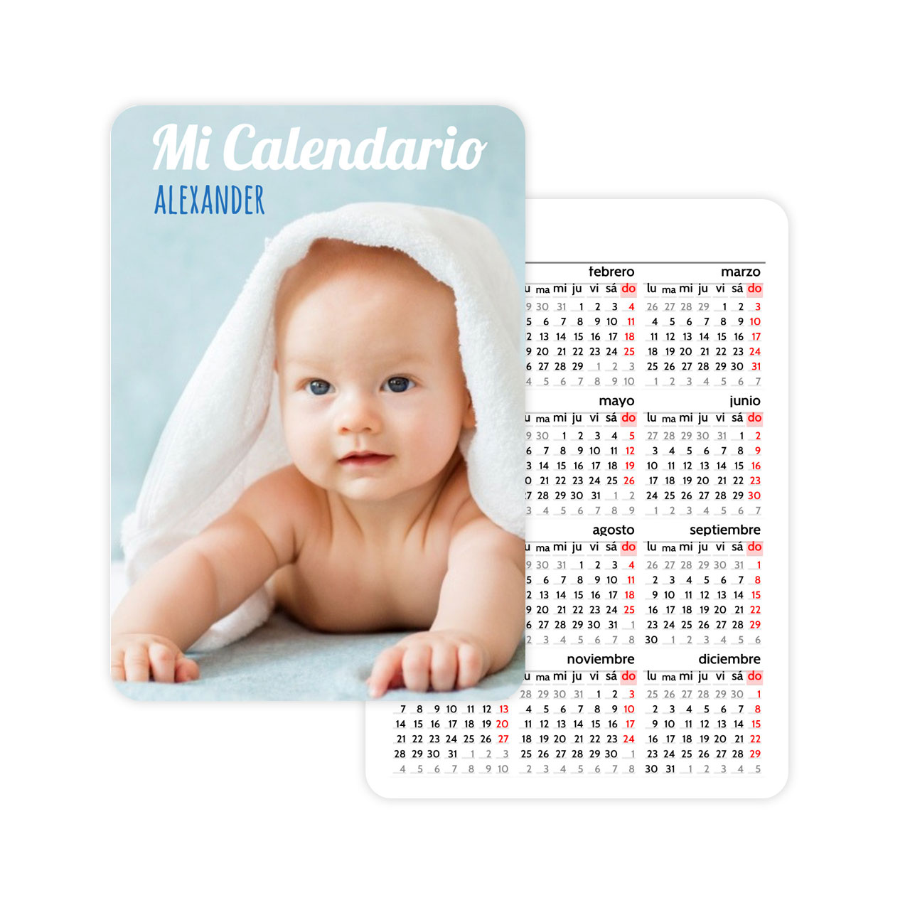 Personaliza tu calendario de bolsillo con tu foto, logo, textos y demás. Calendarios personalizados baratos por pedir grandes cantidades. Personaliza el 100% de la cara que no contiene los meses del año.