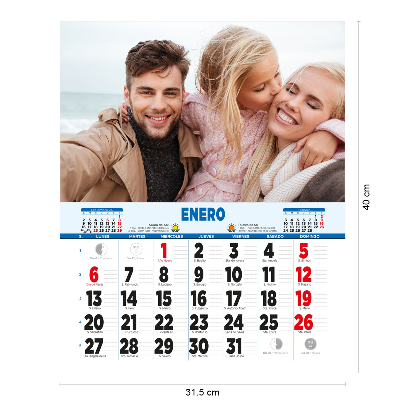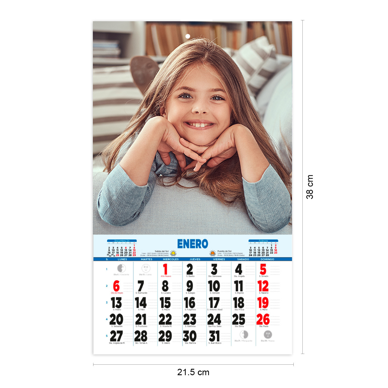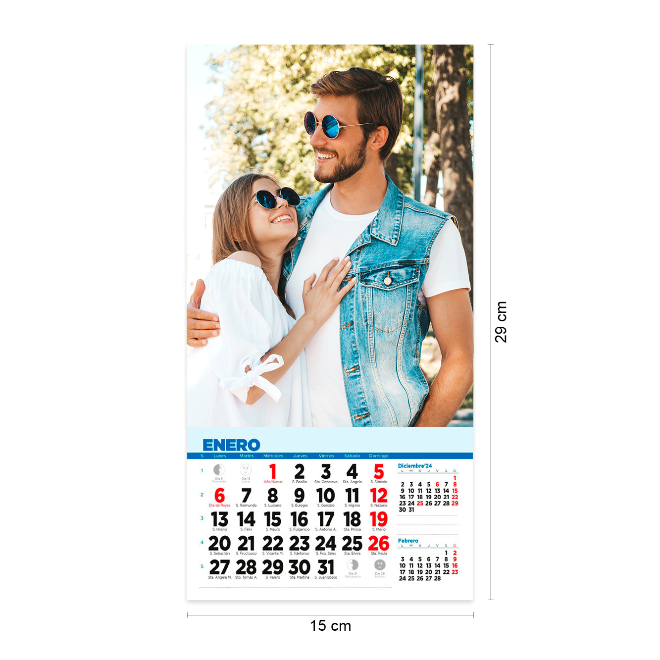 El calendario de pared con faldilla personalizado transforma cualquier espacio en un lugar lleno de recuerdos y organización. Cada calendario puede ser personalizado con una o varias fotos especiales que refleje tus mejores momentos, convirtiéndolo en un elemento decorativo y funcional para marcar cada día del año. Disponible en múltiples tamaños, ofrece un diseño elegante y práctico para hogares, oficinas o como un regalo único.