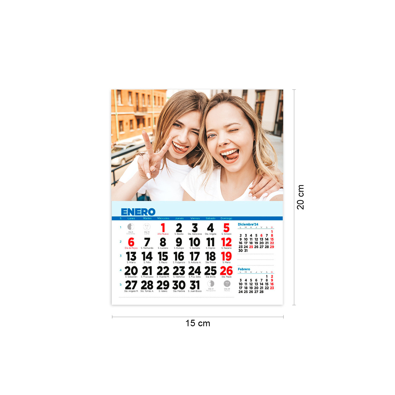 Nuestro calendario imán con Faldilla personalizado es una solución perfecta para mantener tus recuerdos y fechas importantes a la vista en cualquier superficie magnética. Elige una o varias fotos especiales para personalizarlo, ponle un texto si lo deseas y crea un calendario decorativo único que destacará tu nevera, la oficina… Disponible en diferentes tamaños.